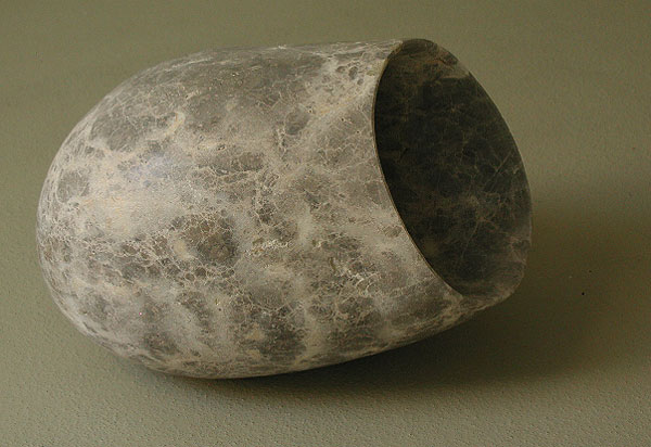 Stein gilt oft als Metapher der Stille, als tote Materie. "Bubbles" lässt jedoch fünf organisch geformte Steine, die an einer Seite geöffnet und ausgehöhlt sind, lebendig erscheinen. Obwohl das Material sehr hart ist, wirkt es durch seine wolkige Struktur eher weich. Und obwohl die Öffnungen wie Münder wirken, ist der Laut, den sie sichtbar von sich geben, wie eingefroren. Werden die Steine jedoch angestoßen, bewegen sie sich hin und her und geben dabei Geräusche von sich. Die Spannung der Gegensätze von hart und weich, von laut und leise, von starr und bewegt bietet einen emotionalen Zugang - es entsteht ein Dialog zwischen Materie und Betrachter.